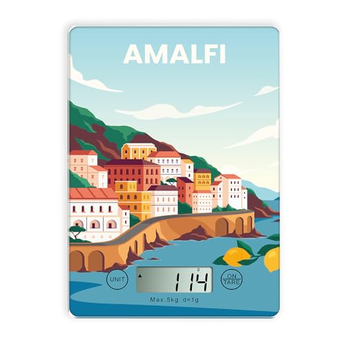 himaly Balance de Cuisine Électronique, Balance Cuisine Tare Numérique, précision 5 kg,Ecran LCD, en Verre Trempé, Multifonctionnel, Conversions Liquides, Noir