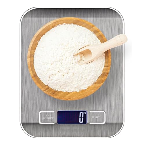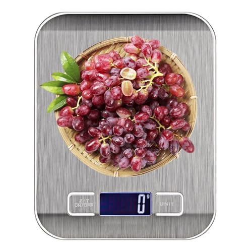 Zivacate Balance de Cuisine, Balance Alimentaire 5 kg/11 lb avec Écran LCD Rétroéclairé, Précision 1 g, 6 Unités et Fonction Tare Acier Inoxydable, pour Bureau, Pâtisserie, Cuisine