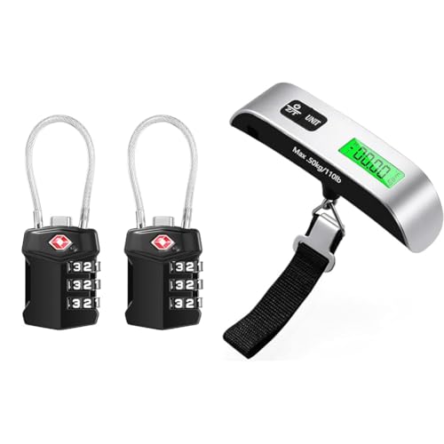Blendura Cadenas Valise 2 Pack, Cadenas TSA Valise Avion Serrures à Bagages à Combinaison 3 Chiffres Cadenas Voyage & Pèse Bagage Electronique, Balance Portable Pese Valise de Voyage