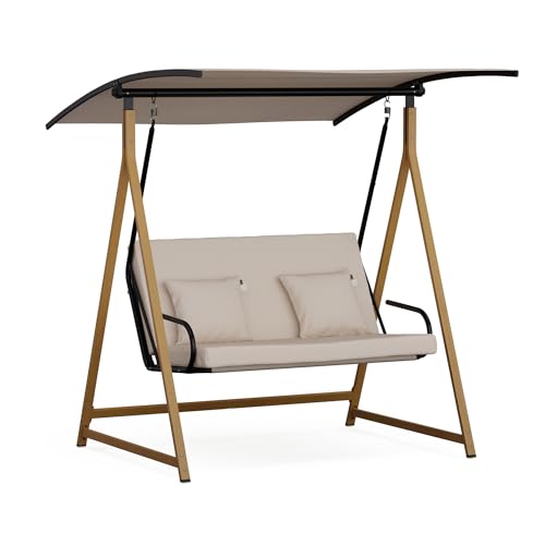 YODOLLA Balancelle de Jardin 2 Places - Balancoire Extérieure avec Auvent Réglable & Coussin Épais - Grand Confort - 143 × 95 × 153 cm (Beige)