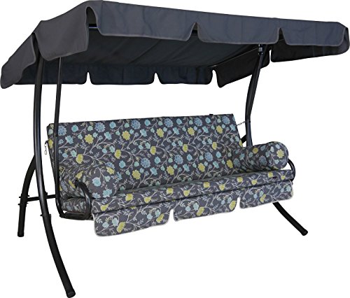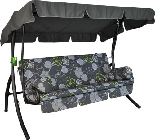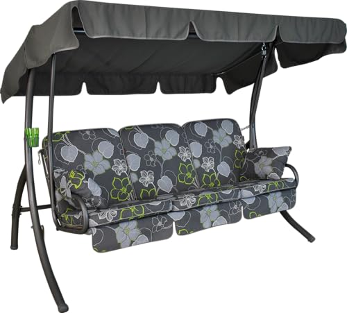 Angerer Balancelle de Jardin Comfort 3 Places, Acier Galvanisé, Convertible en Lit, Toit Parasol Réglable, Coussins Rembourrés (Gris-Vert à Fleurs)