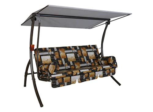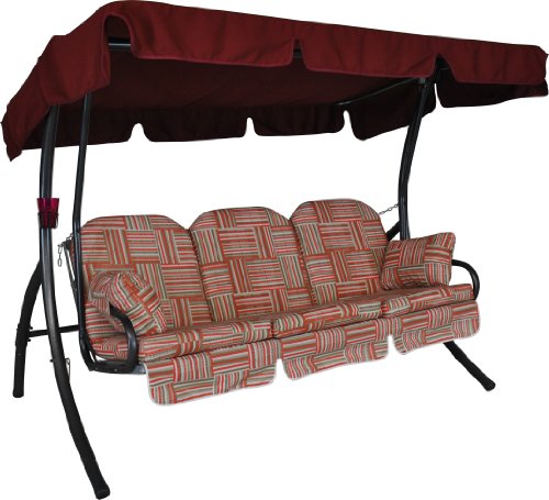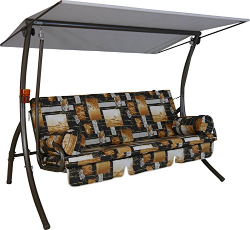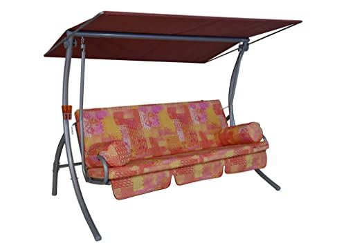 Angerer Balancelle de Jardin Ibiza, Balancelle 3 Places Convertible en Lit, Structure en Acier Galvanisé, Auvent Réglable, Capacité 270 kg, Made in Germany (Motifs Rouge-Beige-Marron)