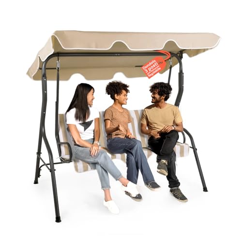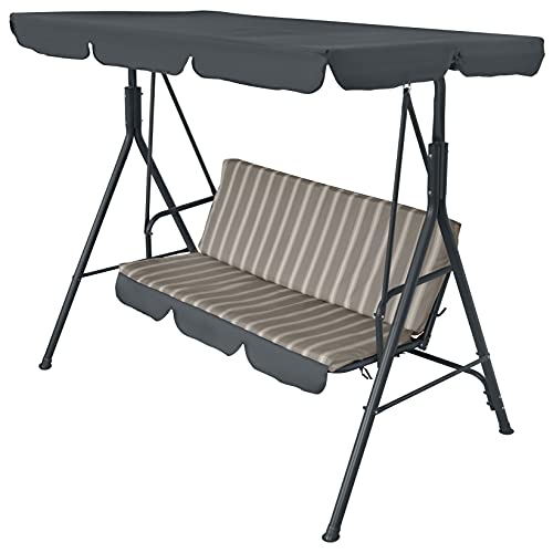 Avilia Balancelle de Jardin 3 Places avec Toit - Balancelle d'extérieur en Acier Anthracite avec Assise Beige, Structure Robuste et Pare-Soleil réglable pour Patio, terrasse, véranda