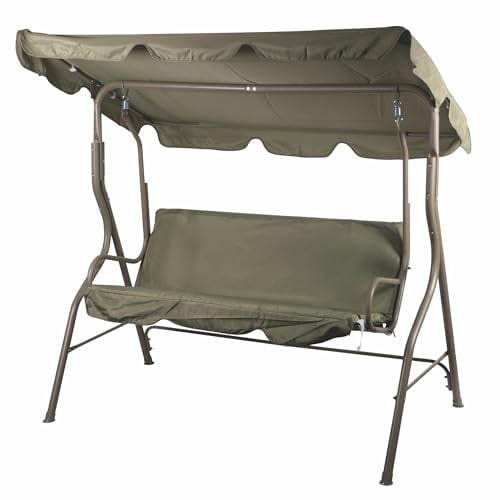 ANGERER Balancelle de Jardin Lounge Smart 3 Places, Acier Galvanisé, Toit Réglable, Position Assise et Allongée Réglable, avec Coussins et Textilène, pour Extérieur (Smart Olive)