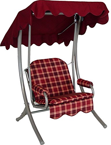 Angerer Balancelle de Jardin 1 Place, Structure en Acier Galvanisé, Toit Ajustable, avec Coussin d'Assise et Accoudoirs, Capacité 120 kg, Fabriquée en Allemagne (Carreaux Bordeaux)