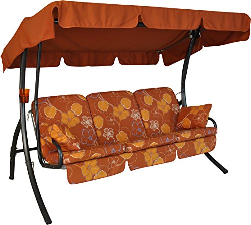 Angerer Balancelle de Jardin Comfort 3 Places, Acier Galvanisé, Convertible en Lit, Toit Parasol Réglable, Coussins Rembourrés (Terracotta-Orange à Fleurs)