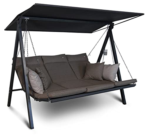 ANGERER Balancelle de Jardin Lounge Smart 3 Places, Acier Galvanisé, Toit Réglable, Position Assise et Allongée Réglable, avec Coussins et Textilène, pour Extérieur (Smart Marron)