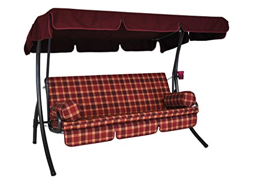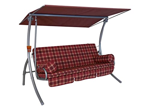 Angerer Dream Balancelle de Jardin Convertible, Structure en Acier Galvanisé, 3 Places avec Toit Ajustable, 210x145 cm Coussin Amovible, Fabriqué en Allemagne (Carreaux Bordeaux)
