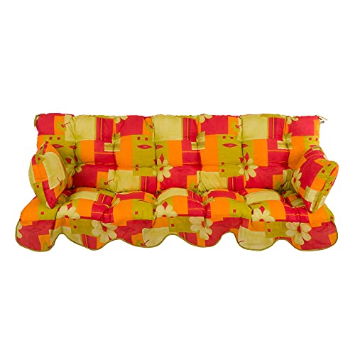PATIO Coussin pour balancelle de Jardin - 180 x 50 cm - Coussin d'assise et Coussin latéral matelassé - Rouge, Orange, Jaune, Vert