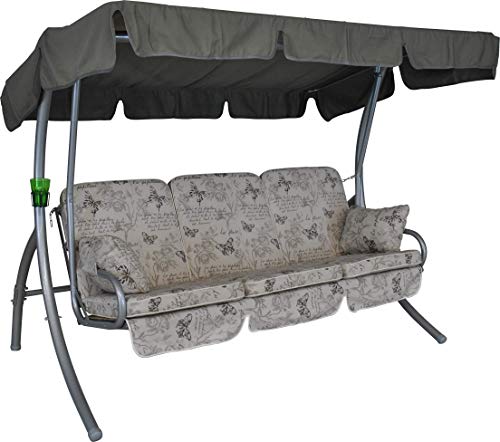 Angerer Balancelle de Jardin Comfort 3 Places, Acier Galvanisé, Convertible en Lit, Toit Parasol Réglable, Coussins Rembourrés (Beige Papillon)