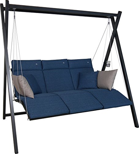 ANGERER Balancelle de Jardin Lounge Smart 3 Places, Acier Galvanisé, Toit Réglable, Position Assise et Allongée Réglable, avec Coussins et Textilène, pour Extérieur (Smart Bleu)