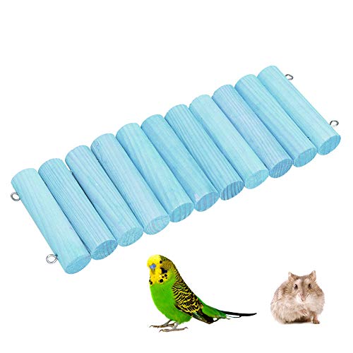 Qalvona Support en Bois pour Animal, Balancelle Lit Suspendu Bleu, 23x8x2cm, Durable et Écologique - Attraction Visuelle, Polyvalent pour Écureuil, Octodon, Hamster et Perroquet