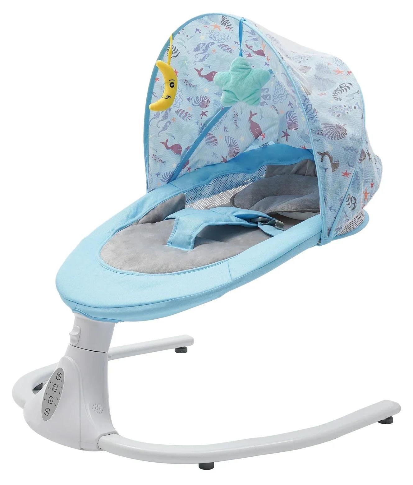 Balançoire électrique et transat pour bébé - S-Y608 - Musique Bluetooth - 4 vitesses - Télécommande - Jusqu'à 20 kg - 0-1 an - Structure métallique - Bleu