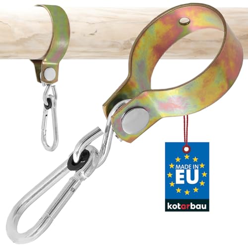 KOTARBAU® Crochet de Balançoire Ø 80 mm Rond avec Mousqueton Pivotant Collier Crochet Hamac Balançoire Exterieur Balancoire de Jardin Crochet Fixation Hamac Acier Galvanisé Doré