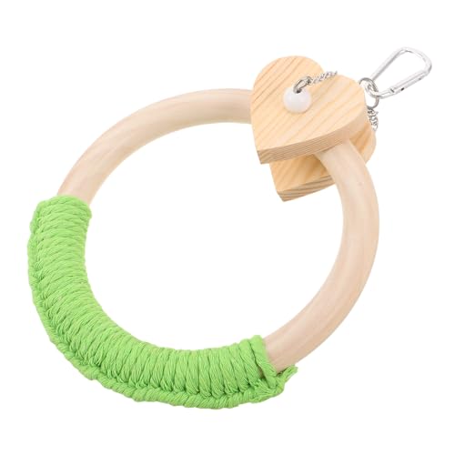 NOLITOY Balançoire Ronde pour Perroquets Grosse Taille en Corde de Coton Verte, Perchoir à Mâcher Grimpant en Bois Naturel, D’activité pour Cage à Oiseaux, Support D’Escalade