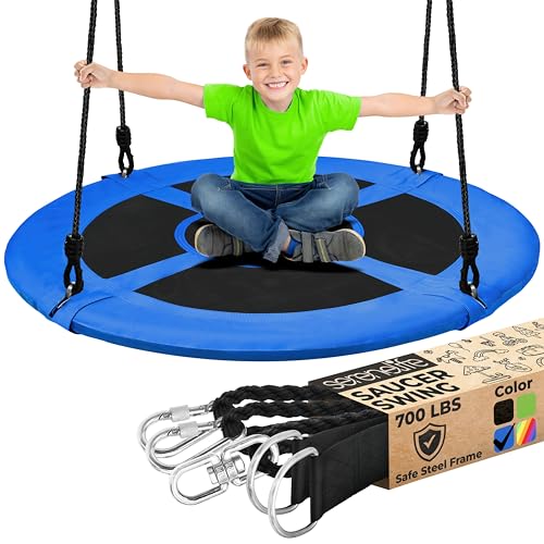 Saucer Balançoire avec Cadre en A Lourd, capacité de Charge de 200 kg, balançoire Ronde Durable avec Cordes réglables, siège Large, en Tissu Oxford 900D