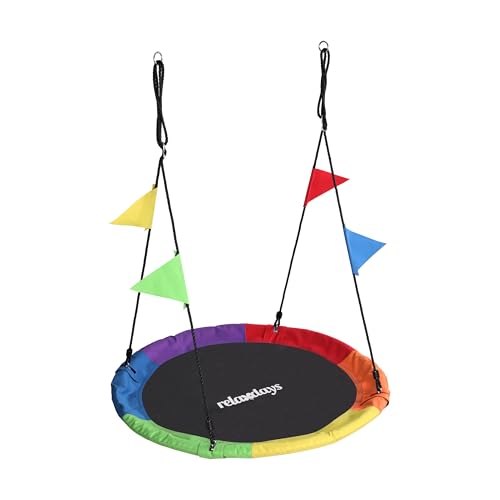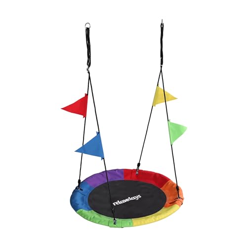 Relaxdays Balançoire Nid Ronde avec Fanions, Réglable, Extérieur, 100 cm, jusqu'à 100 kg, Multicolore