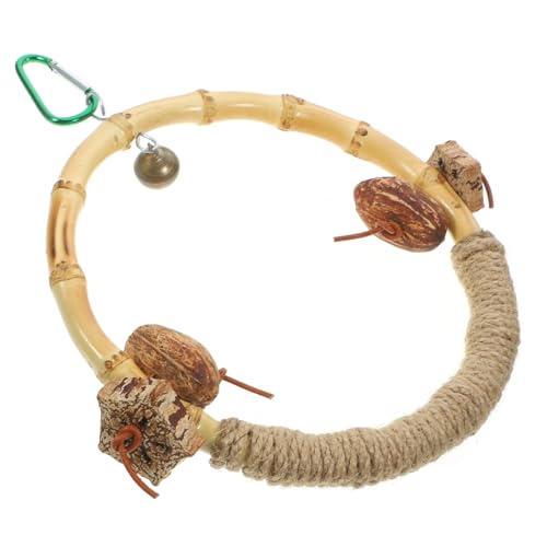 DIYEAH Jouet Perroquet en Bois Suspendu à Mâcher, Balançoire Solide en Bambou Résistant, Taille Moyenne, pour Cage D’Oiseau Intérieur, Stimulation Mentale et Exercice pour Perroquets
