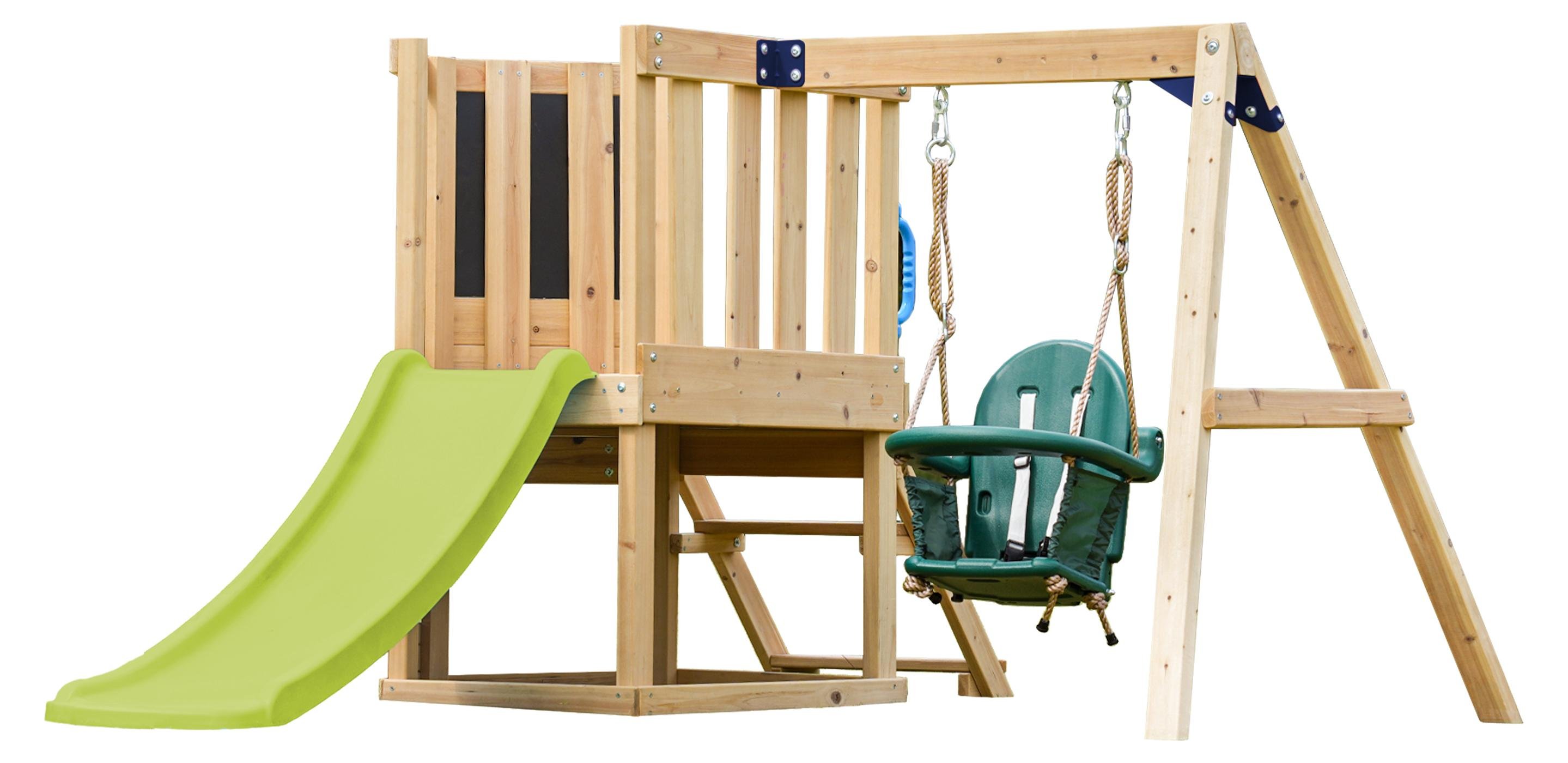 AXI Timo Mini Aire de Jeux - Toboggan Vert Citron | Cabane pour Enfant avec Balançoire pour Bébé, Mur d'Escalade et Tableau Noir | Structure de Jeux