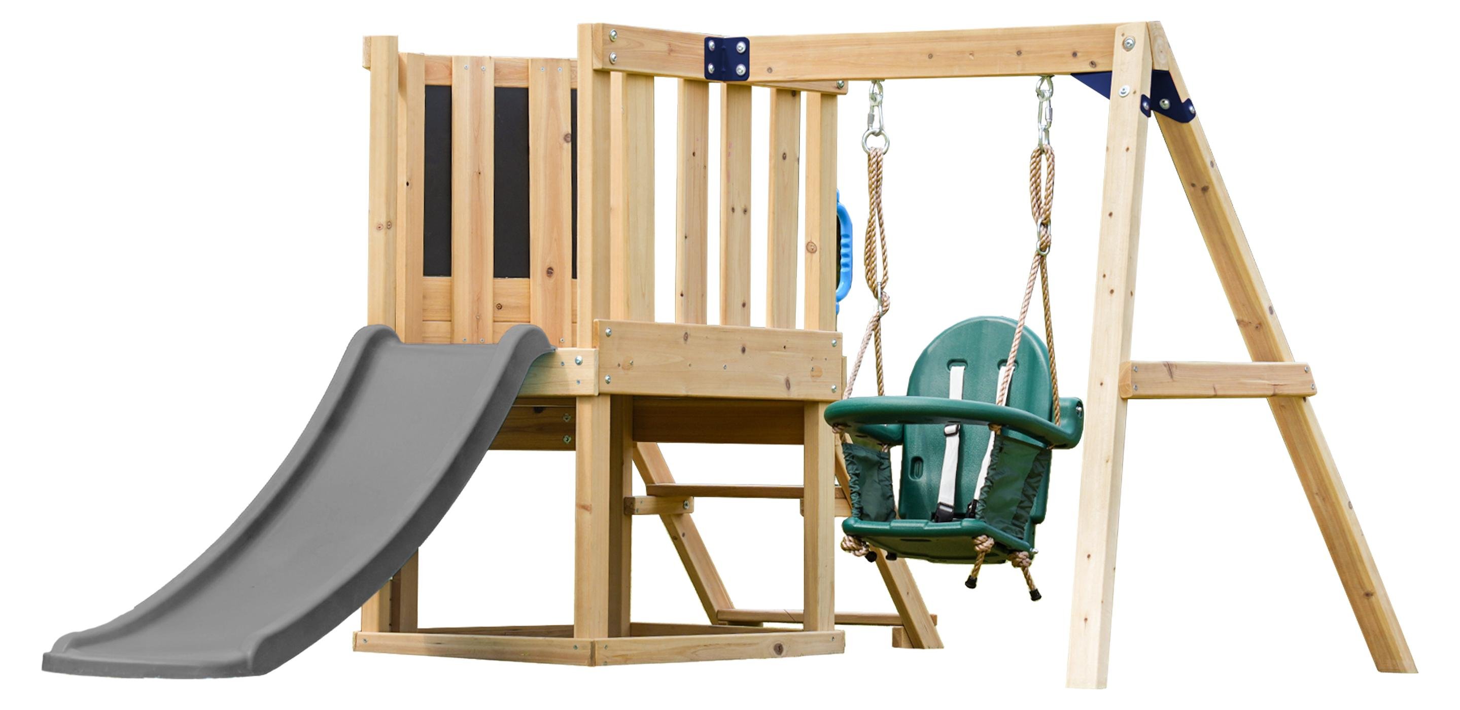 AXI Timo Mini Aire de Jeux - Toboggan Gris | Cabane pour Enfant avec Balançoire pour Bébé, Mur d'Escalade et Tableau Noir | Structure de Jeux pour le