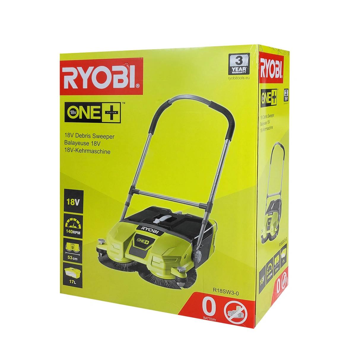 Ryobi 18V Balayeuse sans fil 53cm largeur de travail 17L sans batterie