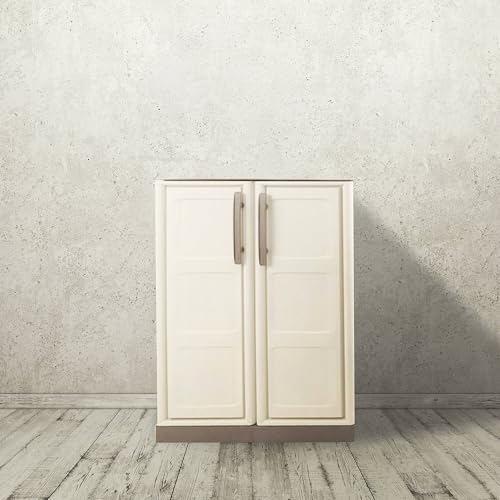 Dmora - Armoire d'extérieur Courtrai, Armoire de Balcon Polyvalente, Mobilier d'extérieur avec 2 Portes, 100% Made in Italy, Beige et Marron, 70x39h86 cm, Finition à Carreaux