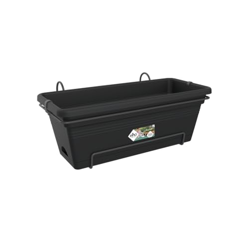 Elho noa balconnière l - Jardiniere Balcon avec système D'Irrigation - Plastique 100% Recycle - 65 x 20 x 17.8 cm - Noir/Living Noir
