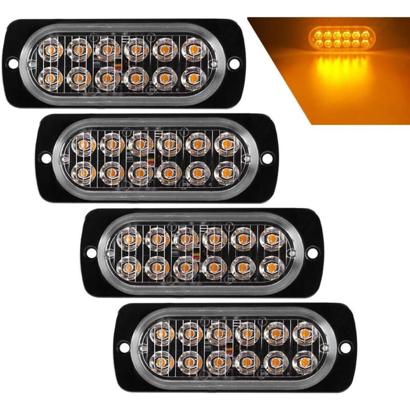 4pcs Ultra Mince 12LED Lumières Stroboscopiques d'urgence Ambre Danger Balise Avertissement Clignotant Lumières Universelles Pour Voiture Véhicule