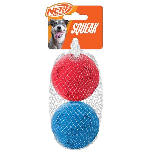 Nerf Dog (2-Pack Soccer Squeak Boule Jouet pour Chien, Rouge/Bleu, Petite