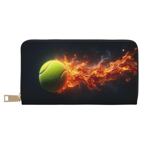 Portefeuille imprimé balle de tennis orange cool pour femmes, portefeuille en cuir à deux volets, portefeuille multi-cartes, long sac à main pour femmes portefeuilles
