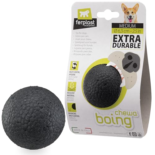 Ferplast Jouet Chien, Balle pour Chien, en Matériau Durable, Non Toxique, Résistante aux Morsures, pour l'Hygiene Dentaire, Rebondissant et Flottant, CHEWA Boing Balle, Jouets pour Chien Moyen, Noir