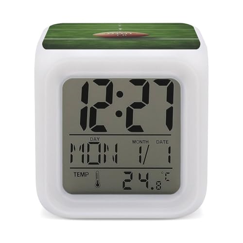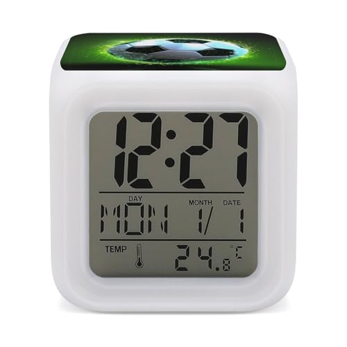 HETVBNS Réveil numérique à 7 couleurs changeantes avec affichage LED, ballon de football, horloge de bureau numérique affiche l'heure, la date et la température, veilleuse pour la maison et la chambre