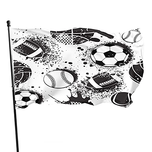 Ballon de sport Drapeau de jardin noir et blanc 0,9 x 1,5 m Football Basketball Volleyball Baseball USA Jeu Lien Polyester Yard Drapeaux Maison Patio Pelouse Intérieur Extérieur Bannière de voeux