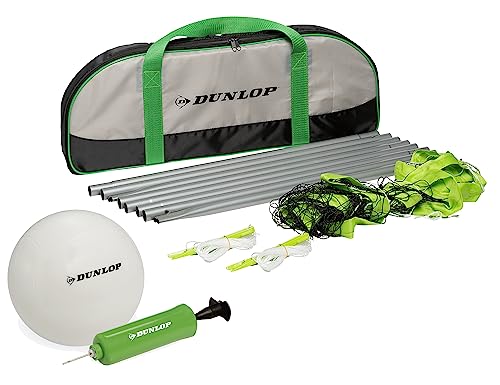 DUNLOP Ensemble de Volley-Ball - 609 x 220 CM - avec Filet de Volleyball, Lignes de Haubanage, Plots, Ballon, Pompe à Ballon et Sac de Transport - Vert/Noir/Blanc