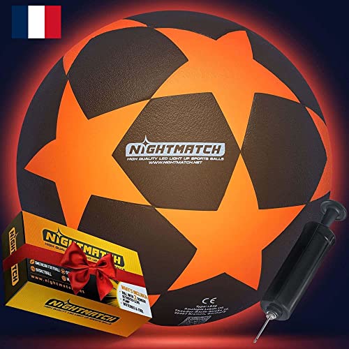NIGHTMATCH Jouez dans l'obscurité avec Le Ballon Foot Lumineux LED Taille Officielle 5 - Kit Complet Comprenant 2 LED activées par capteur pour Une expérience de Jeu Unique !