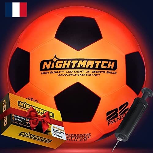 NIGHTMATCH Ballon de Foot Lumineux LED - Taille Officielle 3-2 LED Activées par Capteur pour S'amuser dans L'obscurité - Idéal pour Les Petits et Les Grands - Ballon de Foot Enfant