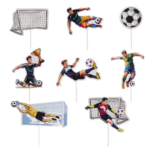 dekora - Décoration pour Gâteaux de Football, Cake Toppers en Papier Anniversaire Enfant, Lot 16 pièces (8 motifs) joueurs, ballon et but, Decoration gateau foot