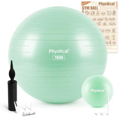 PhysKcal Ballon de Gymnastique épais Turquoise Clair de 75 cm et Ballon de Pilates de 23 cm, Ballon de Gymnastique, antidérapant, Ballon d'équilibre, Ballon de Yoga pour la Maison, la Salle de Sport