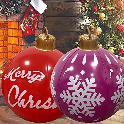 Boule de Noël gonflable décorative – 61 cm – Ballon gonflable géant avec pompe, boules gonflables pour cour, piscine, décorations de jardin extérieures