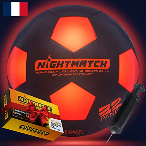 NIGHTMATCH Jouez dans l'obscurité avec Le Ballon Foot Lumineux LED Taille Officielle 5 - Kit Complet Comprenant 2 LED activées par capteur pour Une expérience de Jeu Unique !