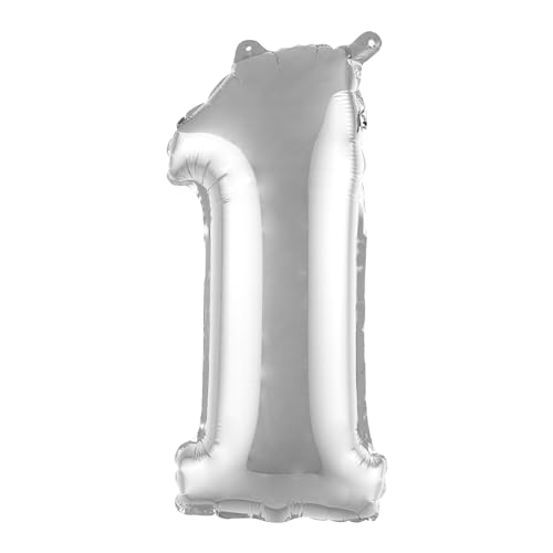 Homéa, Ballon Chiffre 1 Métallisé en Aluminium avec Paille H40 cm Argent