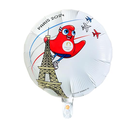 PARIS 2024 - CJO8008 Ballon Aluminium 3D Mascotte 45 cm, Produit Officiel sous Licence, Décorations de Fête, Gonflage avec Paille ou Pompe, Thème Sports, Anniversaire
