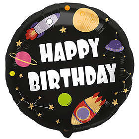 Folieballong Happy Birthday Rymden