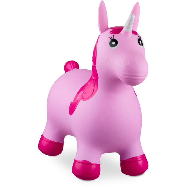 Relaxdays – Ballon sauteur licorne pour enfants – Charge maximale 50 kg – Dimensions H 52 x L 26 x P 62 cm – Avec pompe manuelle – Sans BPA