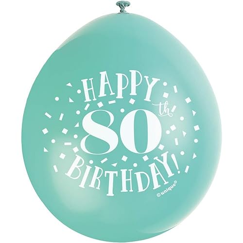 Unique Party 56055 - Ballons de Baudruche - 23 cm - Happy 80th Birthday - Assortiment de 10