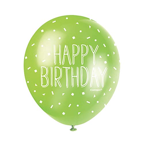 Unique Party 56078 - Ballons de Baudruche Nacré - 30 cm - Happy Birthday - Assortiment de 5