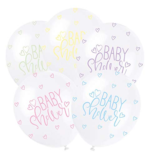 Unique Party 56121 - Ballons de Baudruche Nacré - 30 cm - Baby Shower - Assortiment de 5