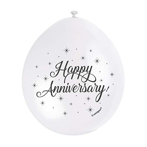 Unique Party 56070 - Ballons de Baudruche - 23 cm - Happy Anniversary - Assortiment de 10