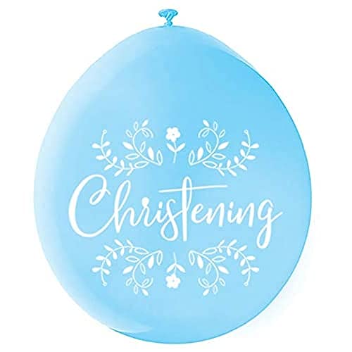 Unique Party 56075 - Ballons de Baudruche de Baptême - Bleu et Blanc - Paquet de 10