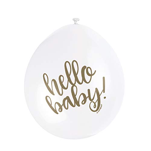 Unique Party 56073 - Ballons de Baudruche - 23 cm - "Oh Baby!" Baby Shower - Paquet de 10 - Or